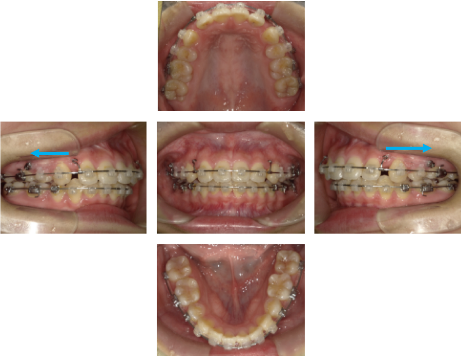 歯を後方へ移動させ、口元の突出感を改善するため、上顎左右4番、下顎左右5番の計4本を抜歯しました。